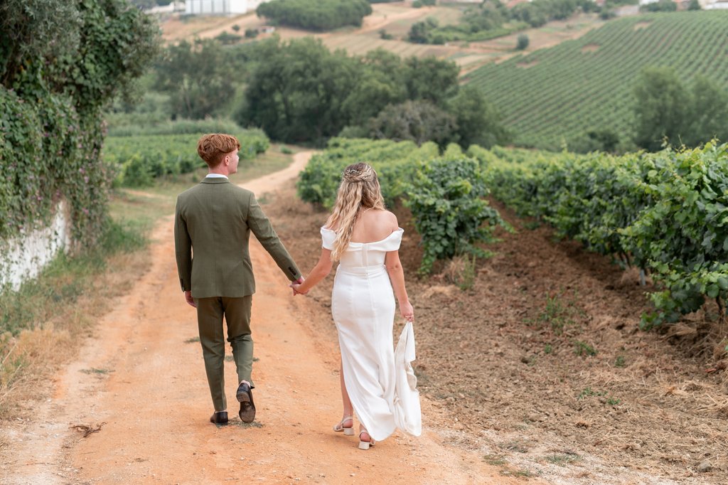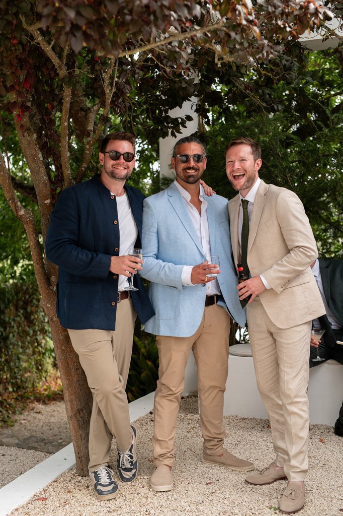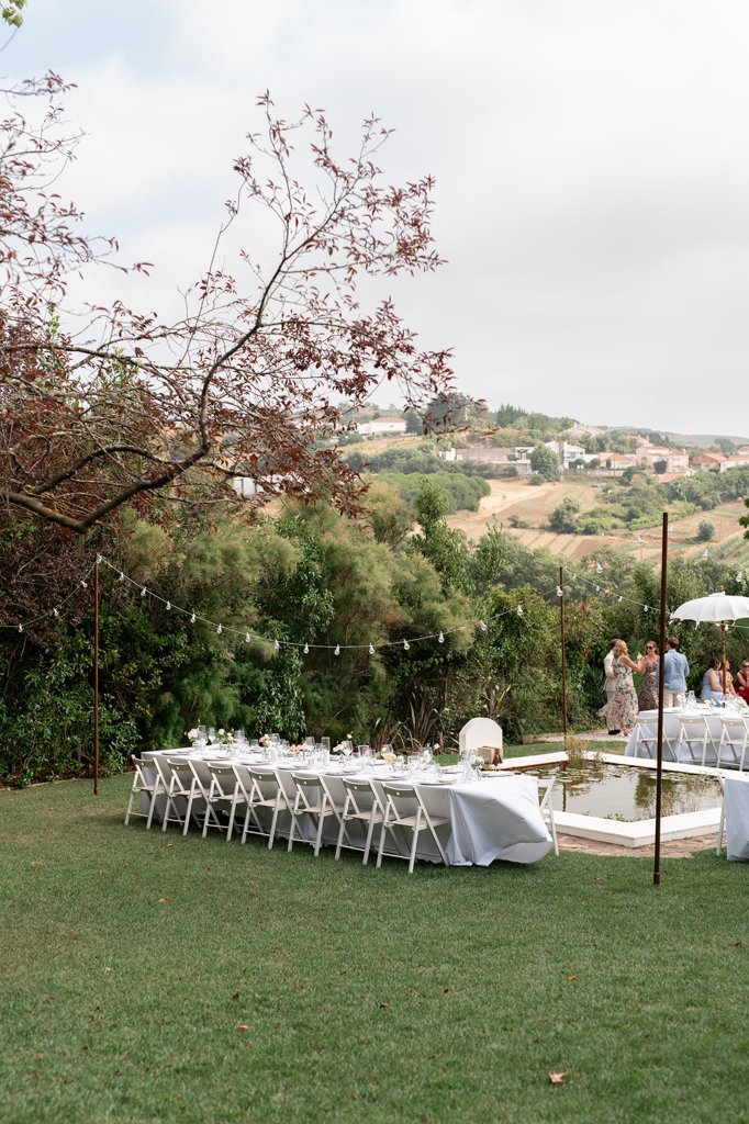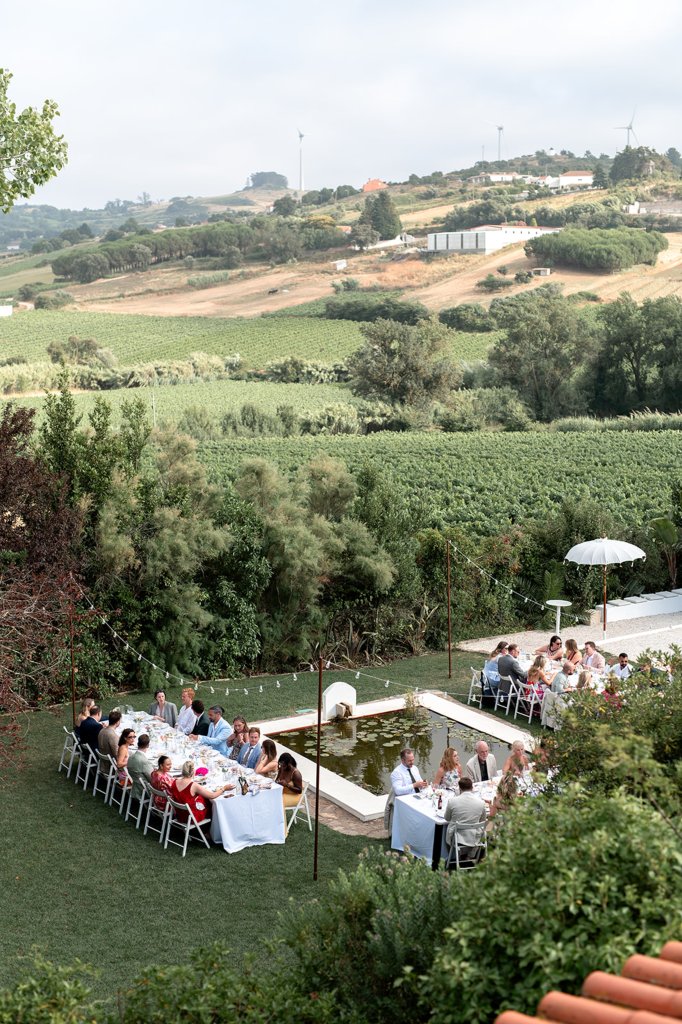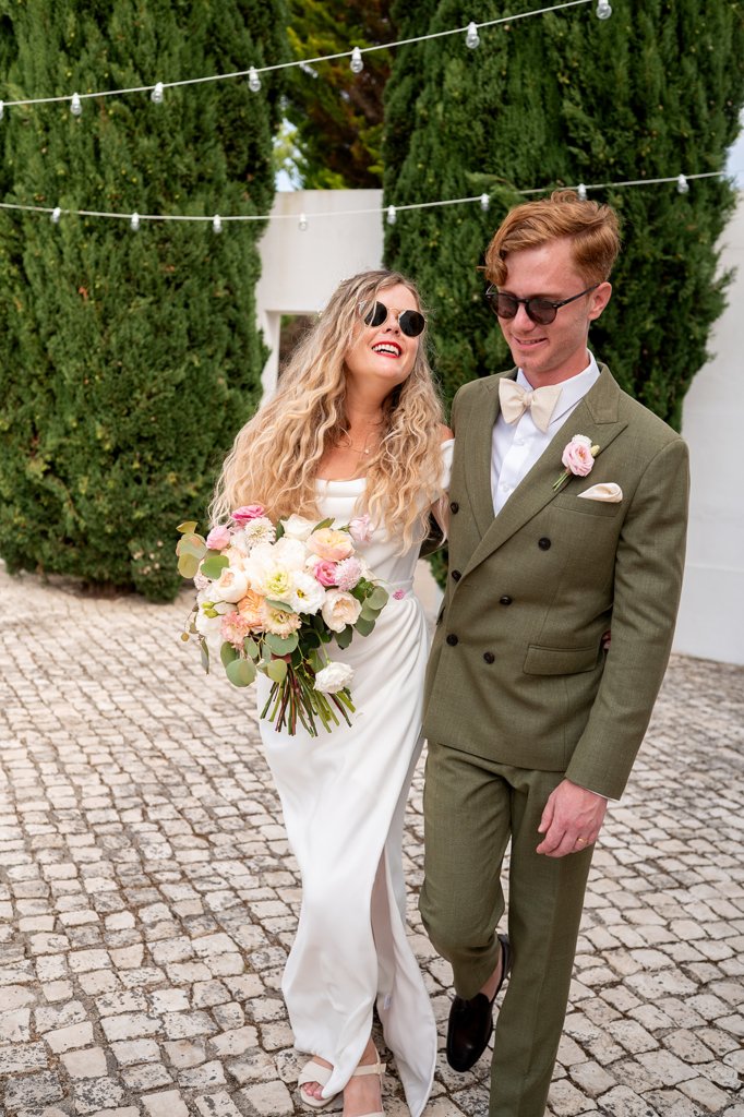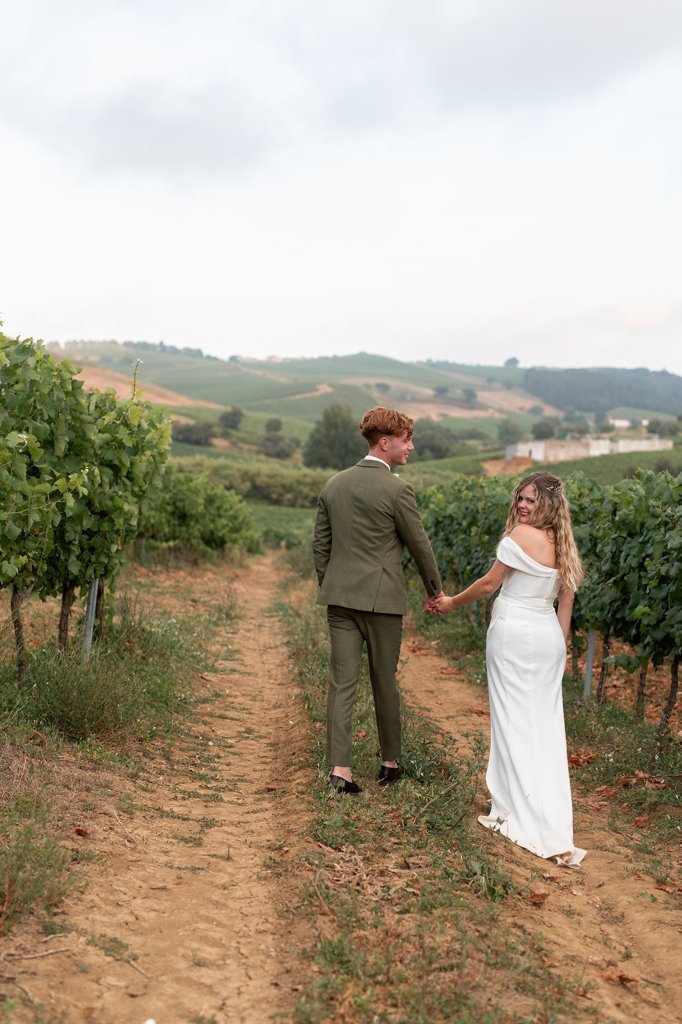 Chloe wore a STUNNING dress from Halfpenny in London, she looked absolutely beautiful. Their ceremony took place outside surrounded by lush greenery and huge trees. After the ceremony, guests had cocktail hour around a beautiful blue swimming pool, which a saxophonist played. We took photographs in Casa Sacoto, the white walls and vineyard made the most amazing backdrop. Guests ate beautiful Portuguese food in an alfresco wedding breakfast, surrounded by gorgeous rolling hills.