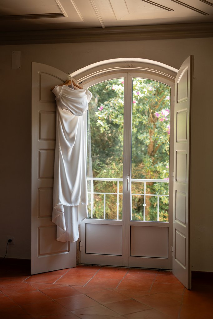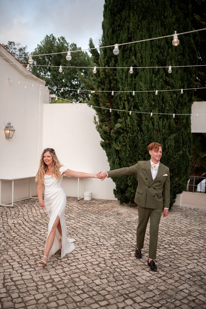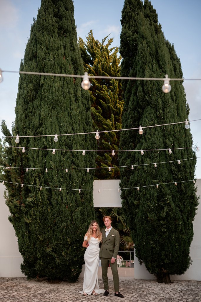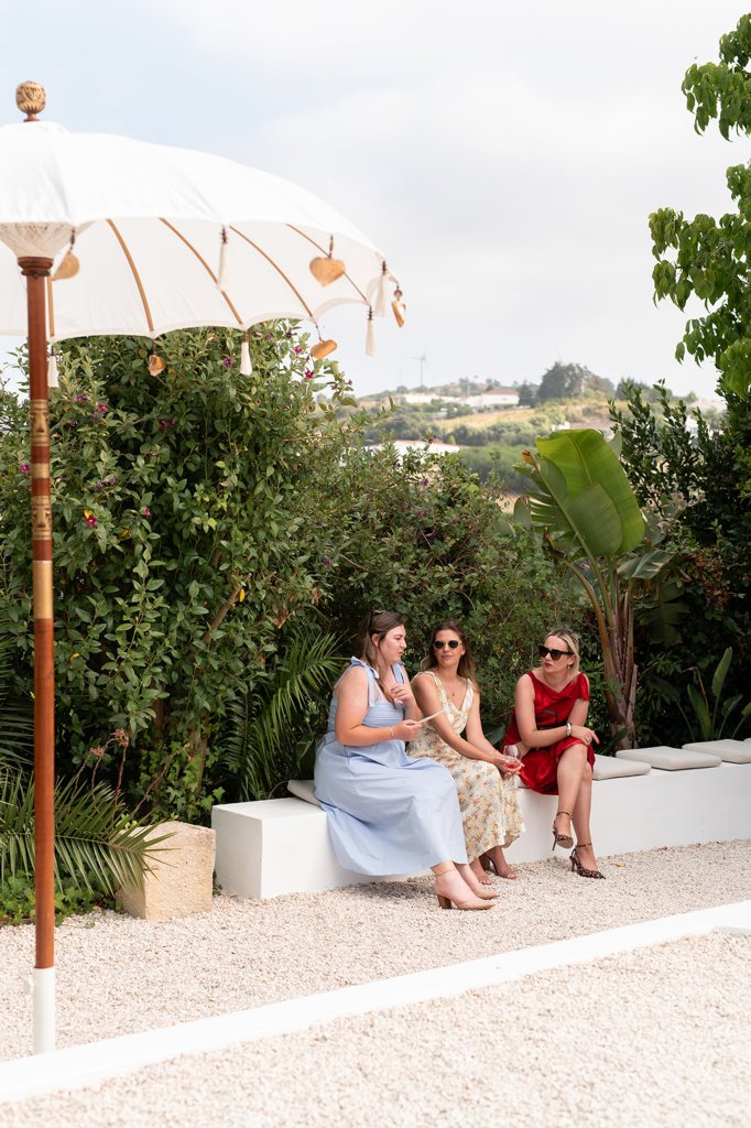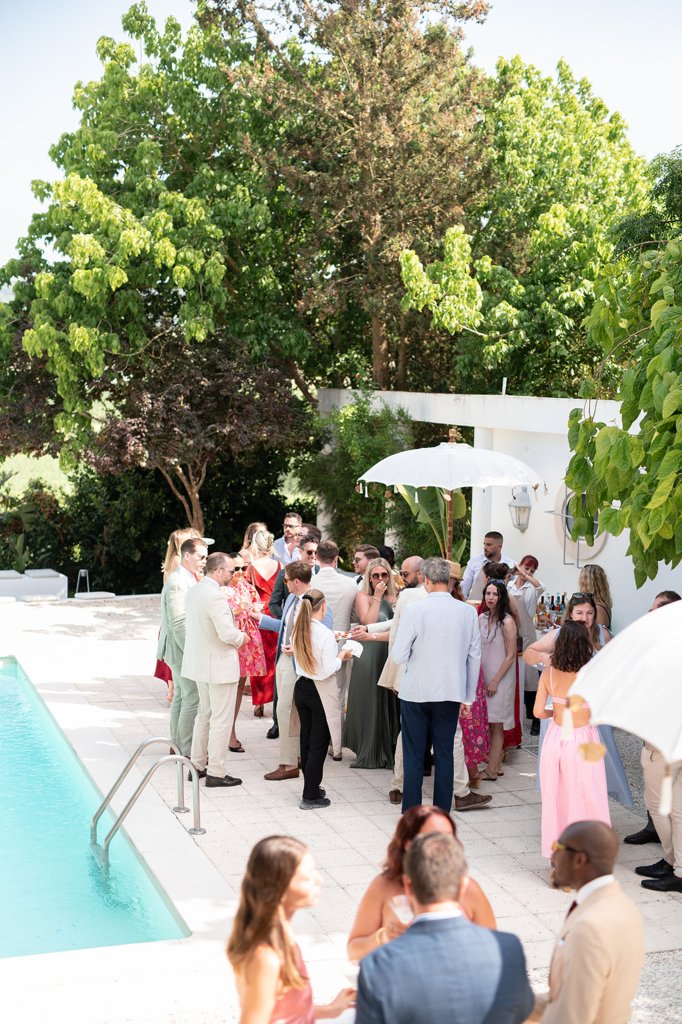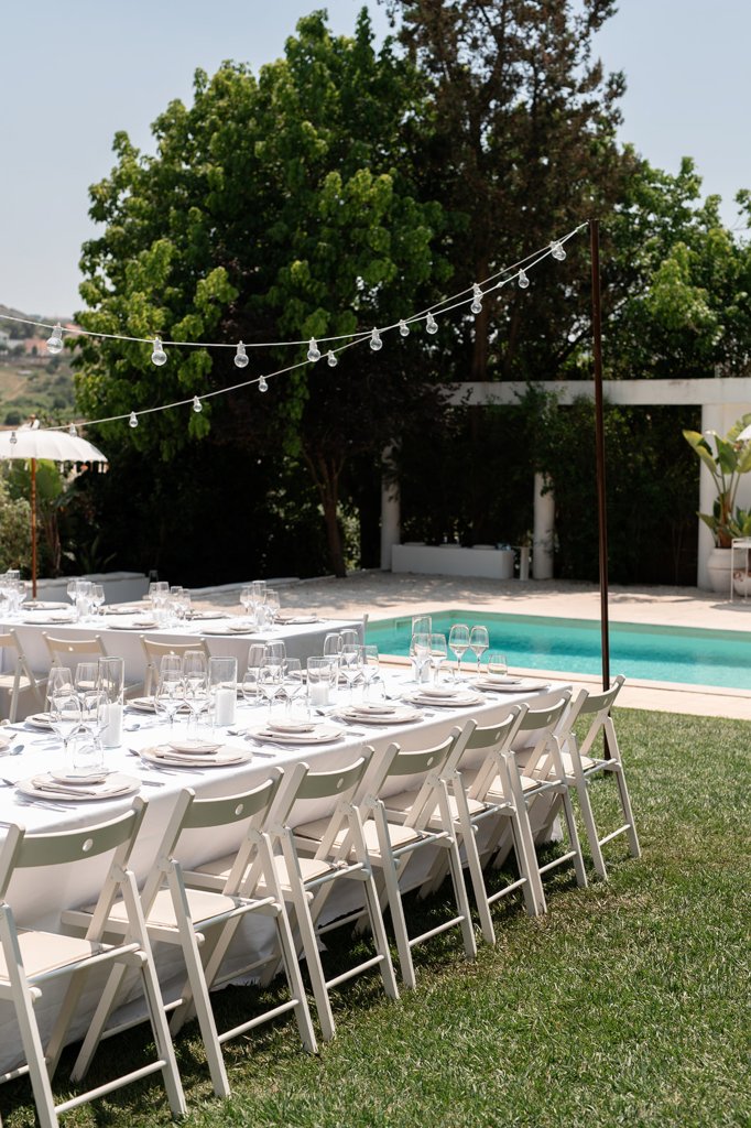 Chloe wore a STUNNING dress from Halfpenny in London, she looked absolutely beautiful. Their ceremony took place outside surrounded by lush greenery and huge trees. After the ceremony, guests had cocktail hour around a beautiful blue swimming pool, which a saxophonist played. We took photographs in Casa Sacoto, the white walls and vineyard made the most amazing backdrop. Guests ate beautiful Portuguese food in an alfresco wedding breakfast, surrounded by gorgeous rolling hills.