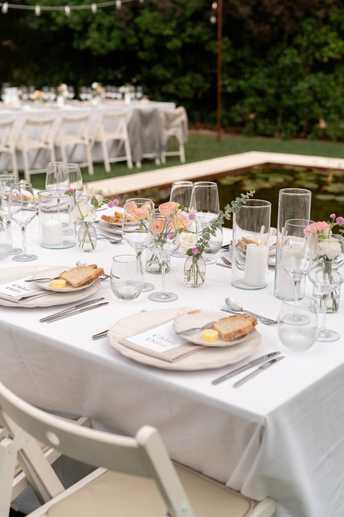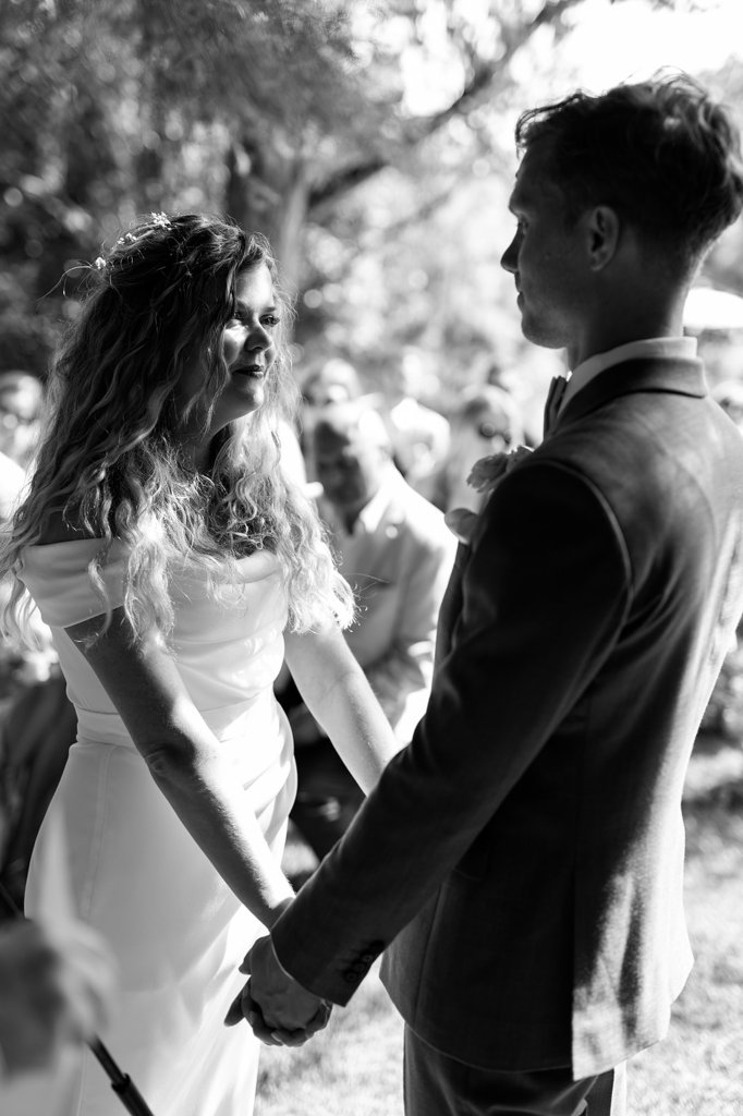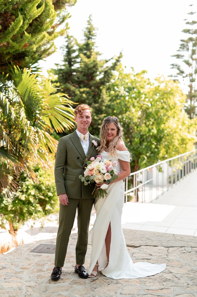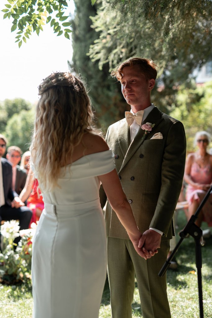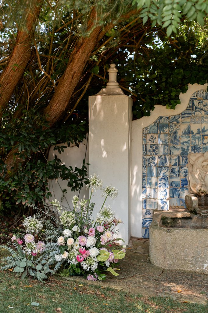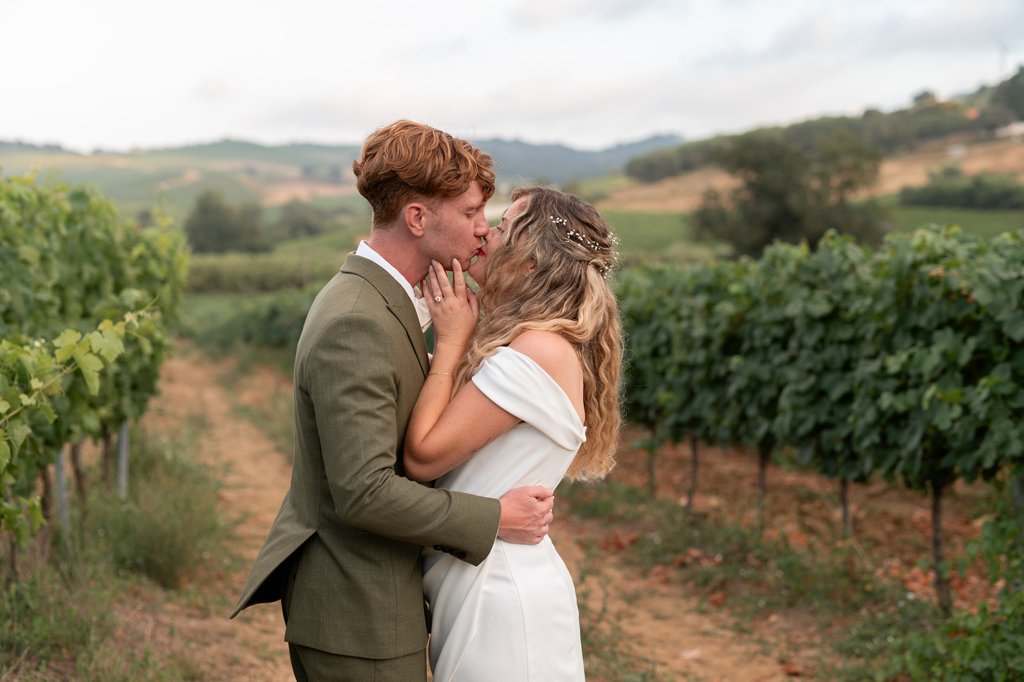 Chloe wore a STUNNING dress from Halfpenny in London, she looked absolutely beautiful. Their ceremony took place outside surrounded by lush greenery and huge trees. After the ceremony, guests had cocktail hour around a beautiful blue swimming pool, which a saxophonist played. We took photographs in Casa Sacoto, the white walls and vineyard made the most amazing backdrop. Guests ate beautiful Portuguese food in an alfresco wedding breakfast, surrounded by gorgeous rolling hills.